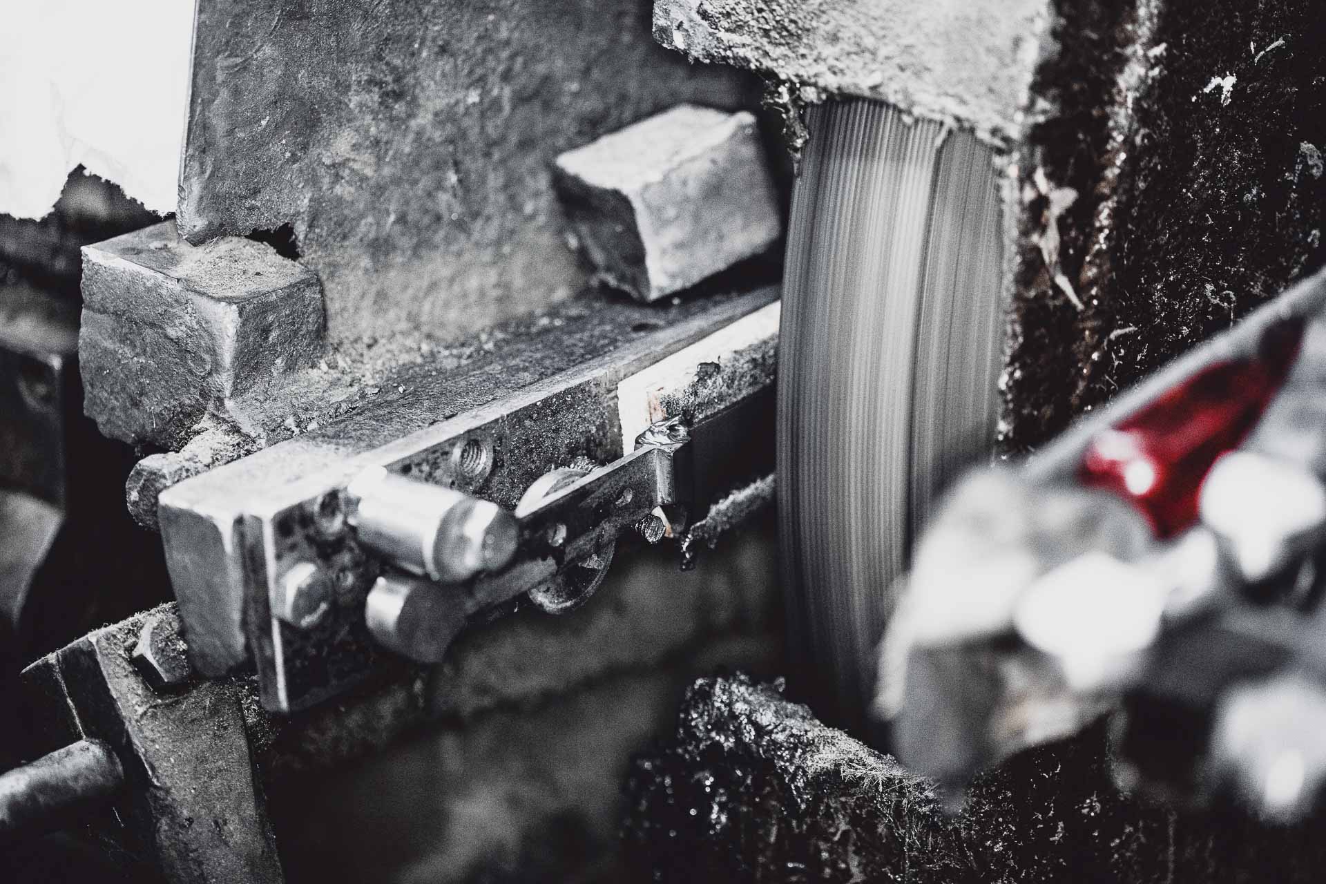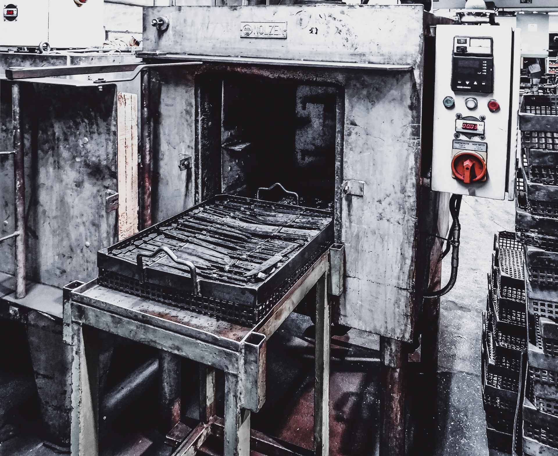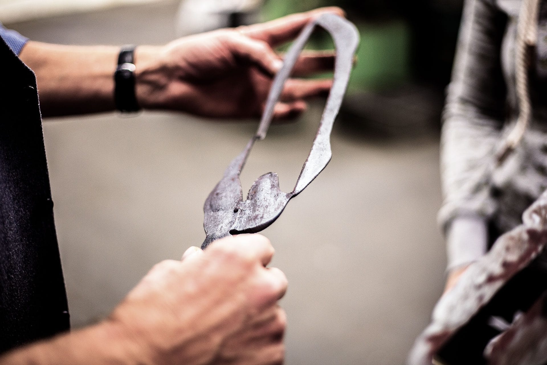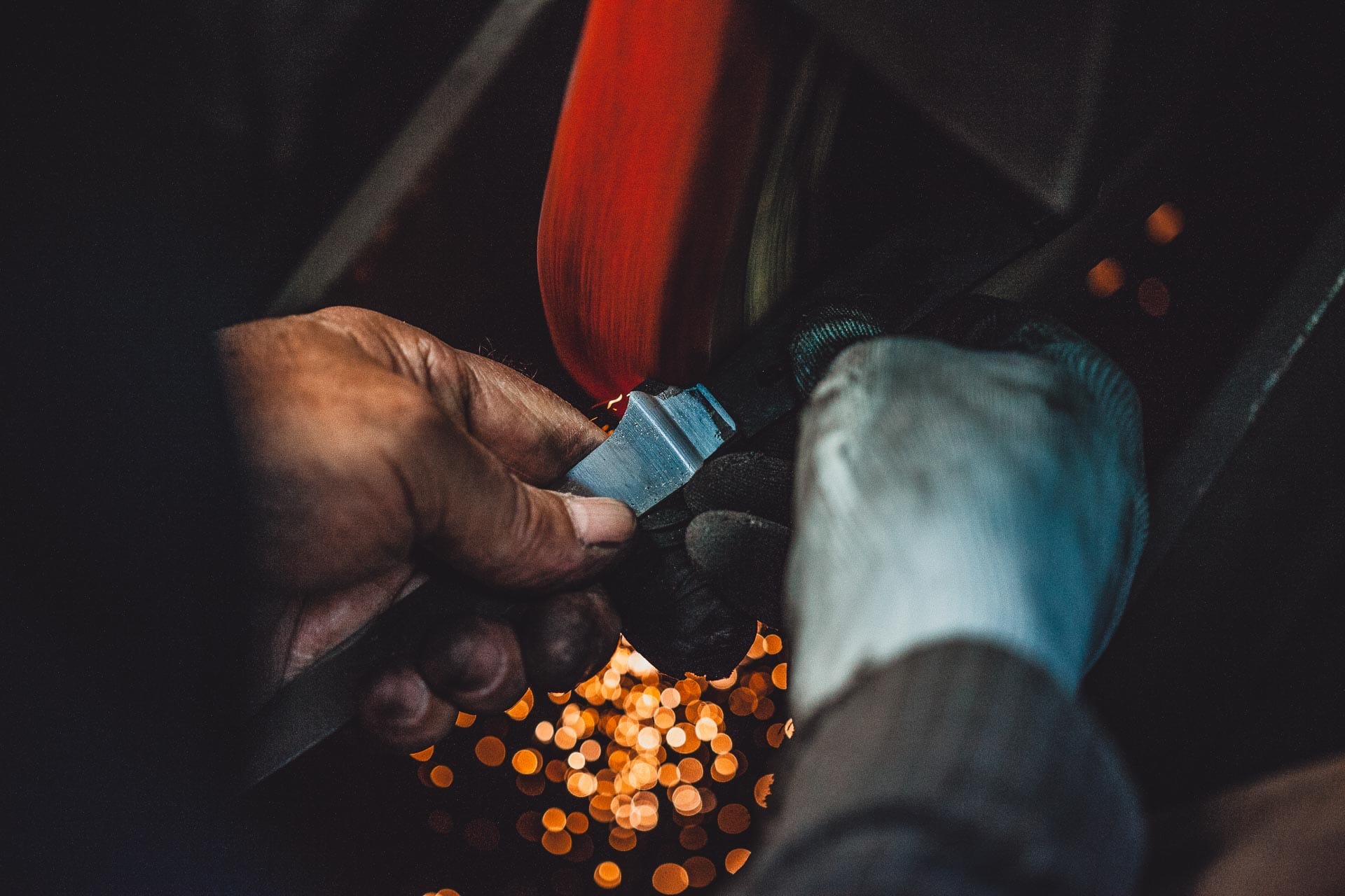 Alles beginnt in der Gesenkschmiede: Aus einem 8 Meter langen Stabstahl (Chrom-, Vanadium-, Molybdänmesserstahl) werden Spaltstücke abgeschnitten. Sie werden bis auf rund 1050 °C erhitzt und mit 3 bis 4 Hammerschlägen im Gesenk geschmiedet. Aus dem Schmiedestück wird schließlich der Messer-Rohling ausgestanzt.