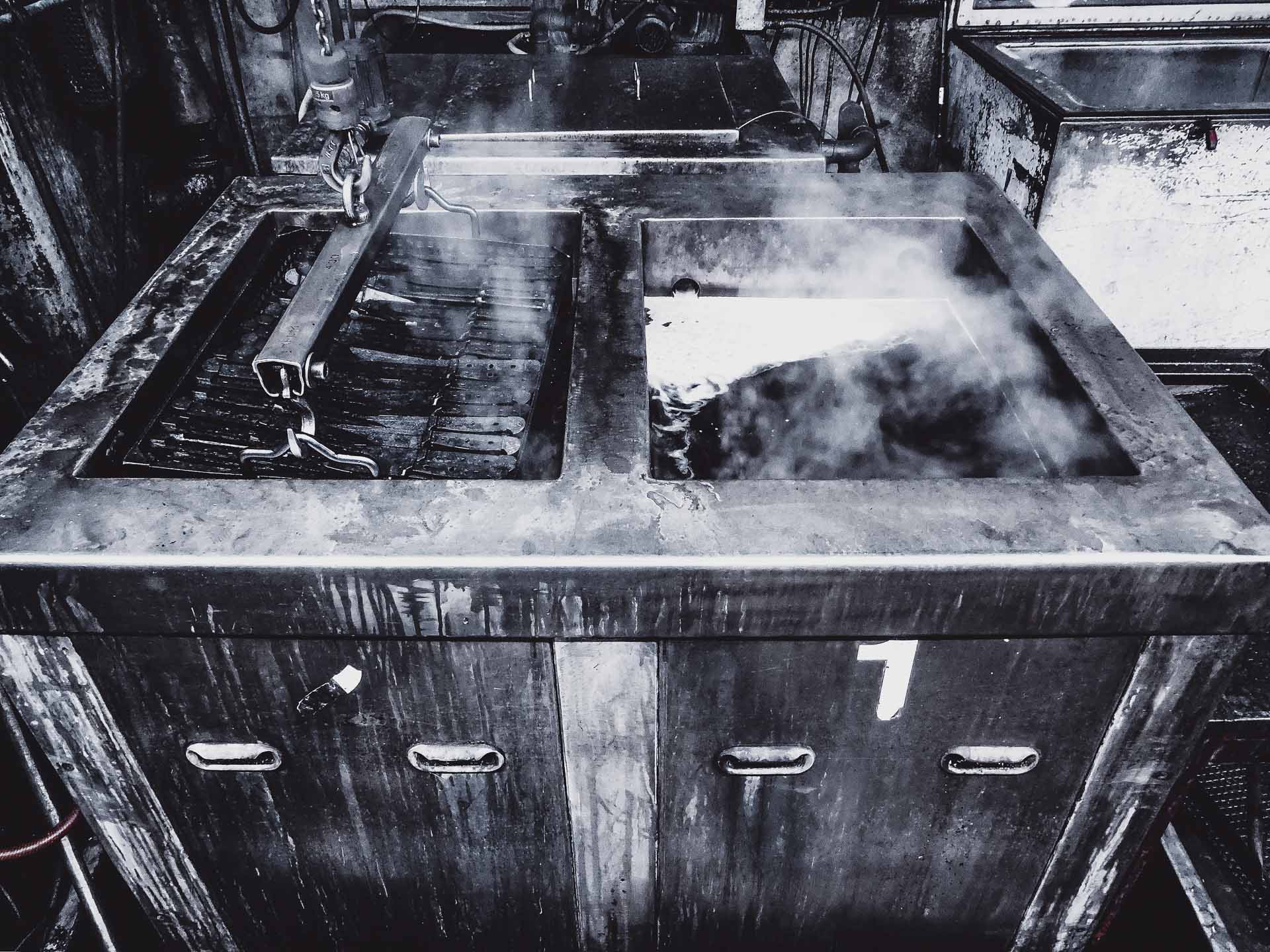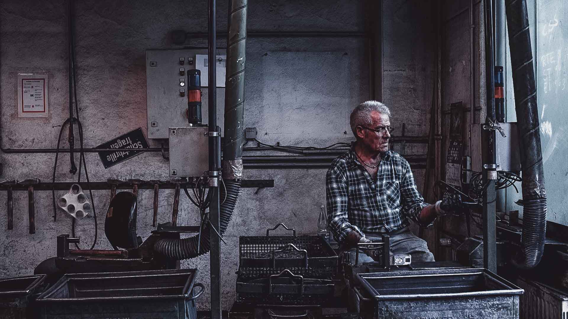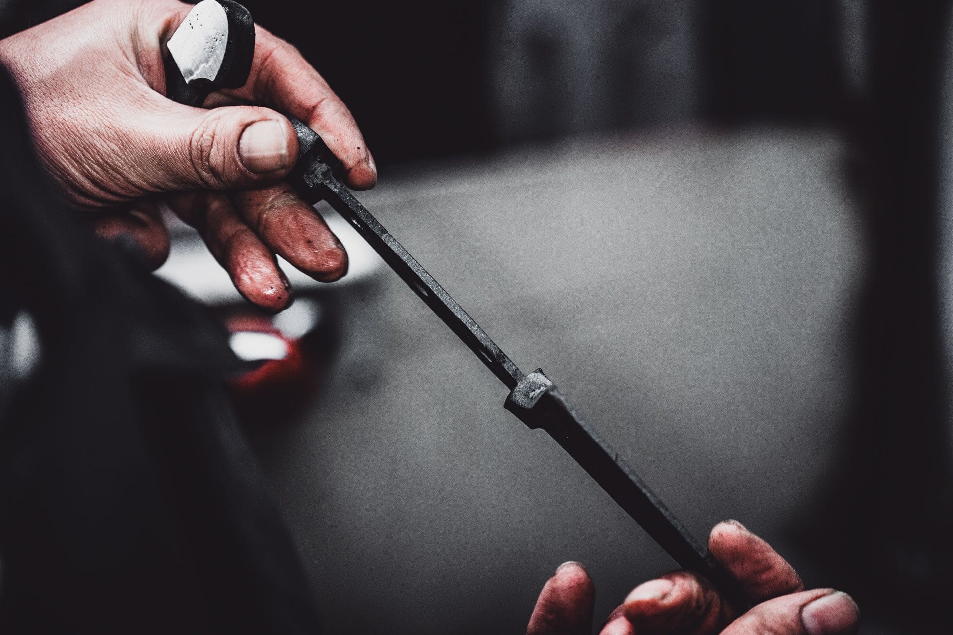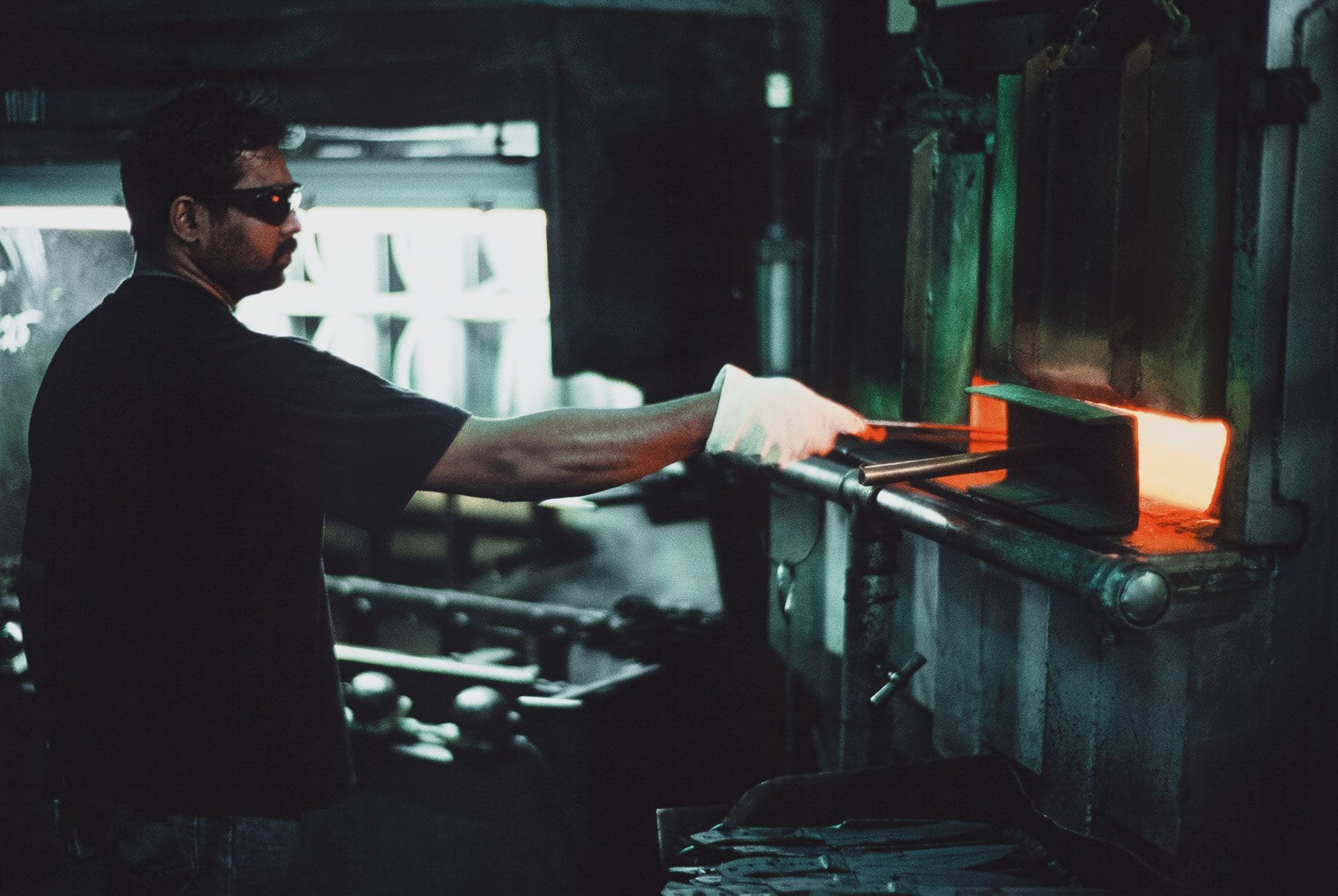 Alles beginnt in der Gesenkschmiede: Aus einem 8 Meter langen Stabstahl (Chrom-, Vanadium-, Molybdänmesserstahl) werden Spaltstücke abgeschnitten. Sie werden bis auf rund 1050 °C erhitzt und mit 3 bis 4 Hammerschlägen im Gesenk geschmiedet. Aus dem Schmiedestück wird schließlich der Messer-Rohling ausgestanzt.