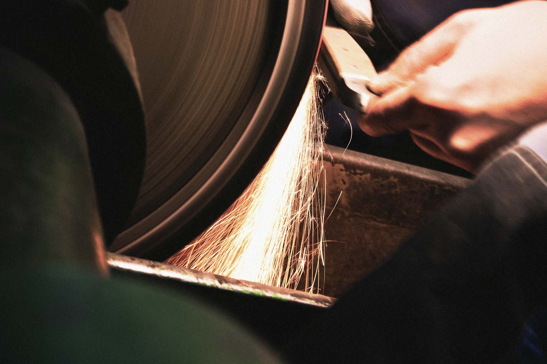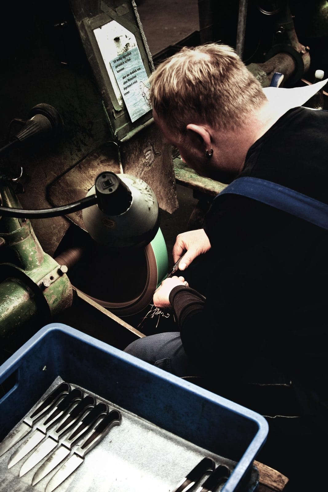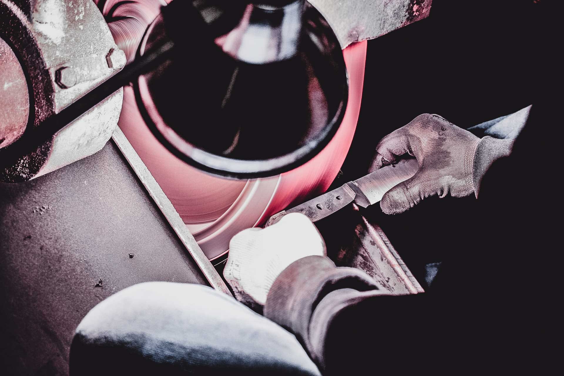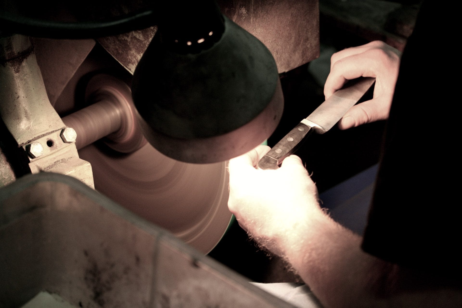 Zuerst wird das Klingenblatt vorgeschliffen, danach erfolgt das Vorschleifen des Messerrückens. Anschließend erfolgt der Feinschliff des Messerrückens und das Spitzschleifen des Kropfes. Die Innenseiten des Griffes werden vorgeschliffen. Das Vorschleifen der Kröpfe erfolgt in 5 Arbeitsschritten. Daraufhin folgt das Feinschleifen des Klingenblattes. Dies nennt sich auch „pliesten“. Bei Brotmessern wird nun der Wellenschliff angebracht und bei Kullenmessern die Kulle. Beim Tomaten-. Käse- und Steakmesser werden ebenfalls die Verzahnungen angebracht. Jetzt ist die Klinge fertiggeschliffen und der Griff kann montiert werden.
