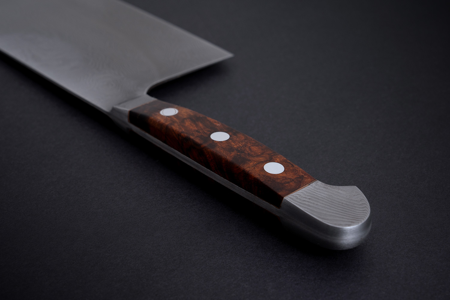 Besonders kreativ wird es bei der Fleischverarbeitung: Das Damastmesser meistert sowohl das Zerteilen von Geflügel als auch das Portionieren von zartem Fleisch. Der Klingenrücken kann dabei zum schonenden Klopfen von Fleisch verwendet werden, während die scharfe Schneide auch durch Sehnen und Knorpel gleitet. Kräuter hacken Sie im Handumdrehen – die breite Klinge ermöglicht dabei den klassischen Wiegeschnitt für aromatische Kräutermischungen.